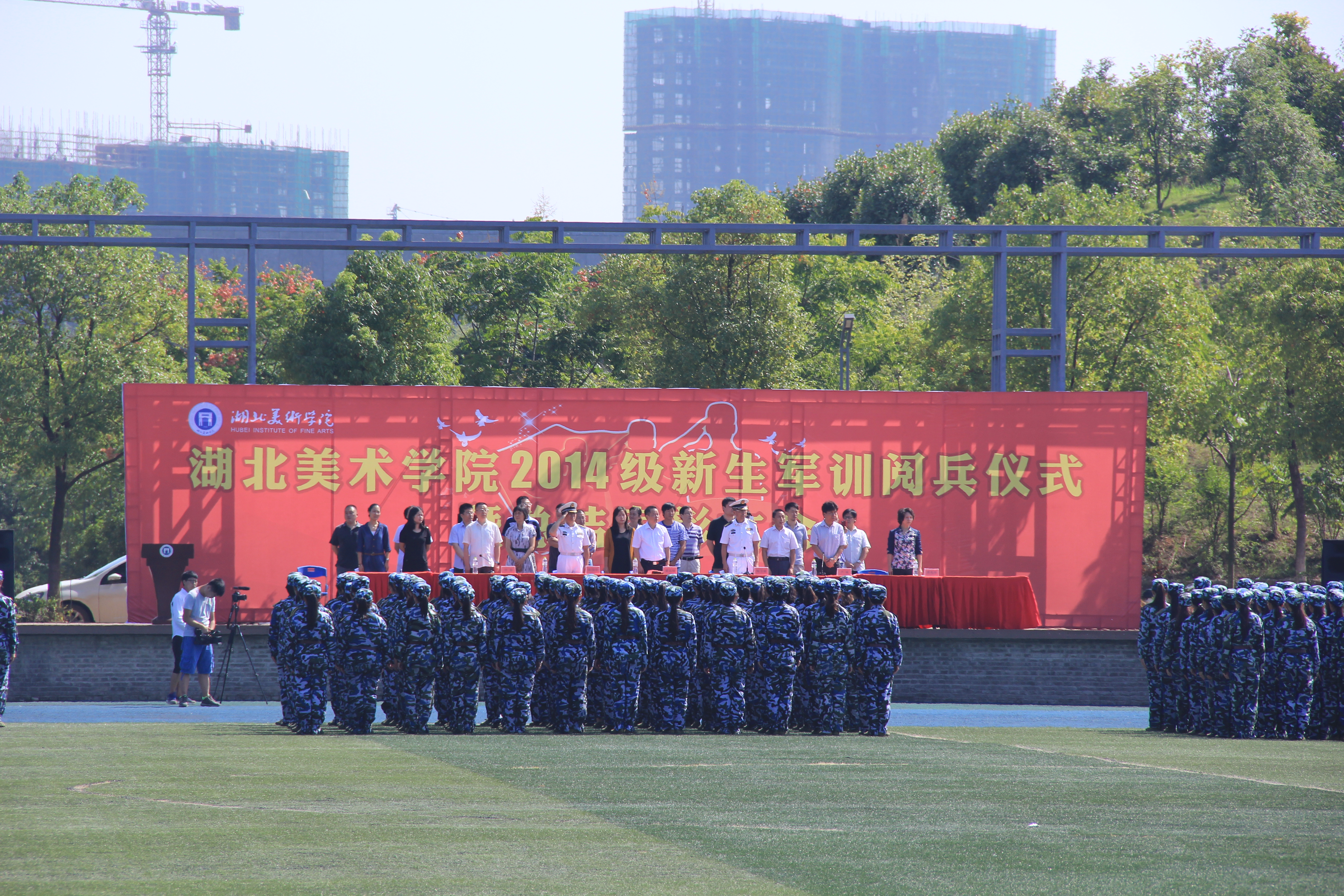 (通讯员:胡新叶 摄影:王永莉)秋风送爽,军歌嘹亮。9月22日,湖北美术学院2014级新生军训阅兵式暨总结表彰大会在校体育场隆重举行。校党委书记梁远钢、党委副书记卢斌、副院长许奋、纪委书记窦先萍,海军及承训单位海军工程大学理学院教学科研办公室主任郜卫荣大校、海军工程大学理学院学员一旅副旅长陈国华上校,以及学校各部门负责人等参加了此次仪式。校党委副书记卢斌主持仪式。 田径场上,军旗飘扬,乐曲激昂。湛蓝湛蓝的天空下,一个个整齐的方阵、一双双兴奋的眼神,期待着首长的检阅。10点整,大会正式开始。首先进行军训检阅。出席的嘉宾和领导们向圆满完成军训任务的新同学们表示亲切的问候。整齐的队伍,饱满的精神,响亮的口号,昂扬的斗志,展现出新时代大学生奋发向上的风采,昭示着我校的勃勃生机和美好未来。接下来,军体拳方阵进行了军体拳表演,一招一式无不显示军人的阳刚之气。之后同学们还进行了队列表演,整理着装、整齐报数、跨立、敬礼礼毕、齐步行走、正步立定,一举一动无不彰显军训的良好成果。他们代表全体新生为大学第一课交上了一份令人满意的答卷。
