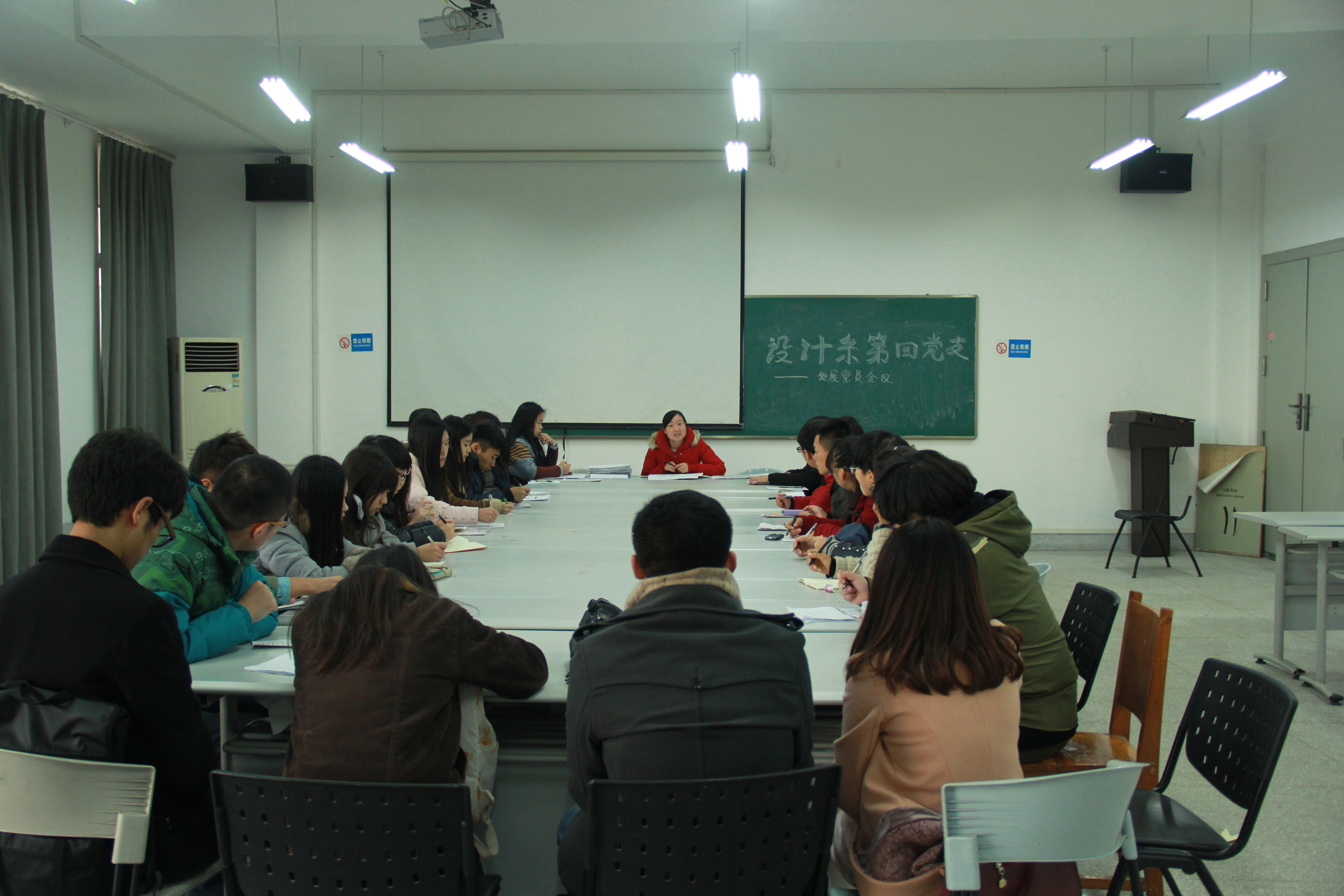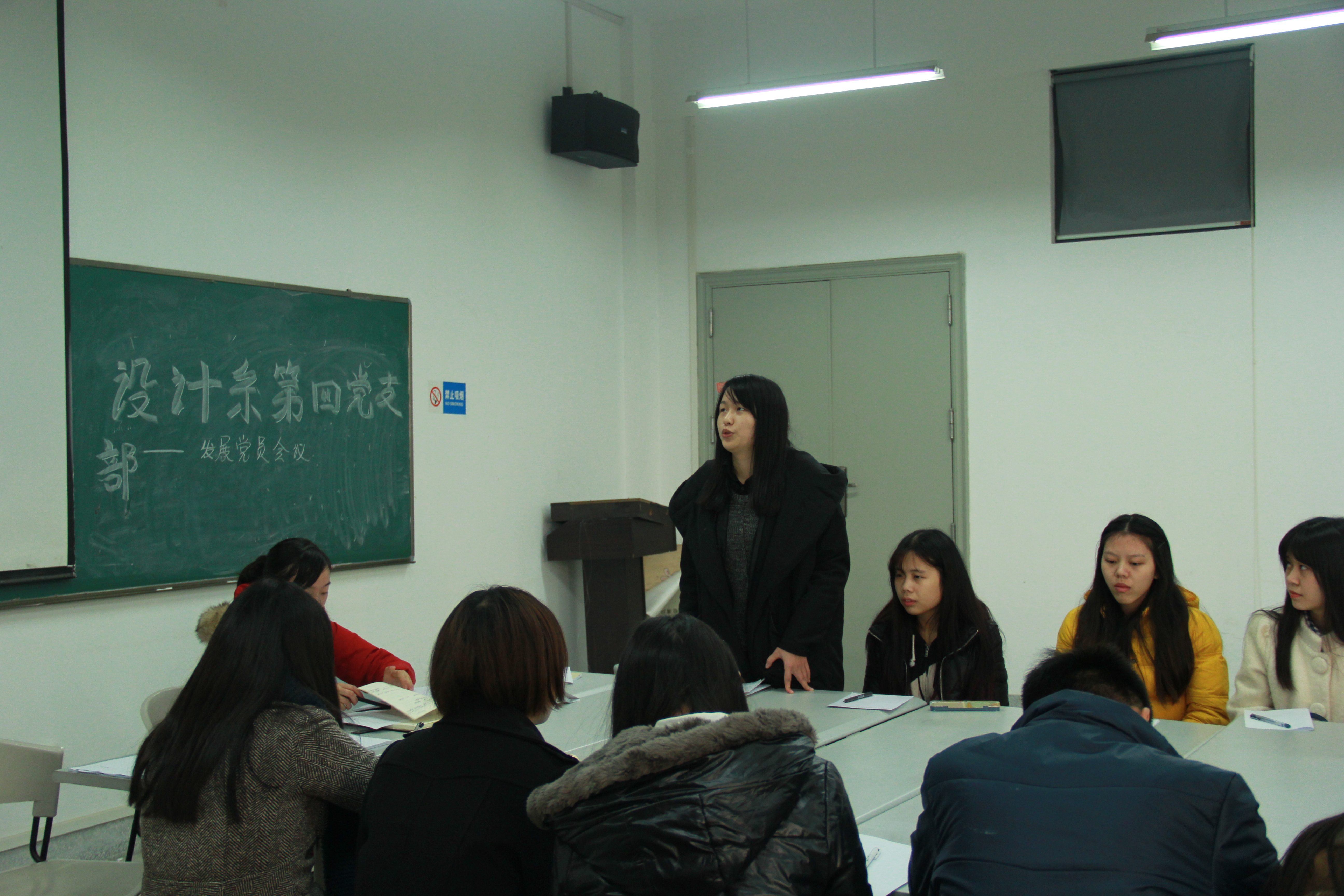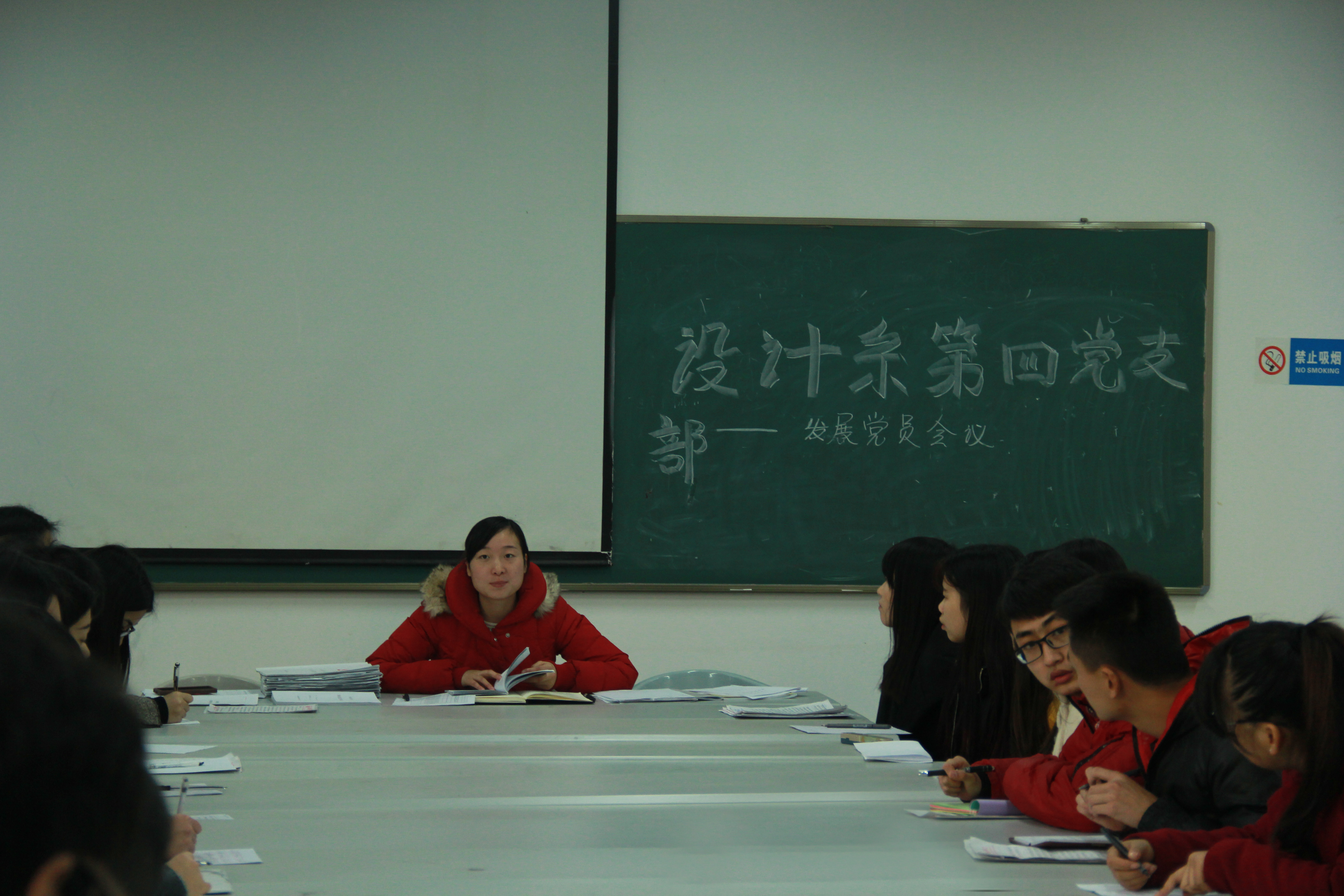 (通讯员:龚美姣 摄影:伍泳君)2014年12月29日下午16点30分,设计系第四党支部于A9教学楼209教室开展了发展党员会议,此次会议由黄婧辅导员主持。