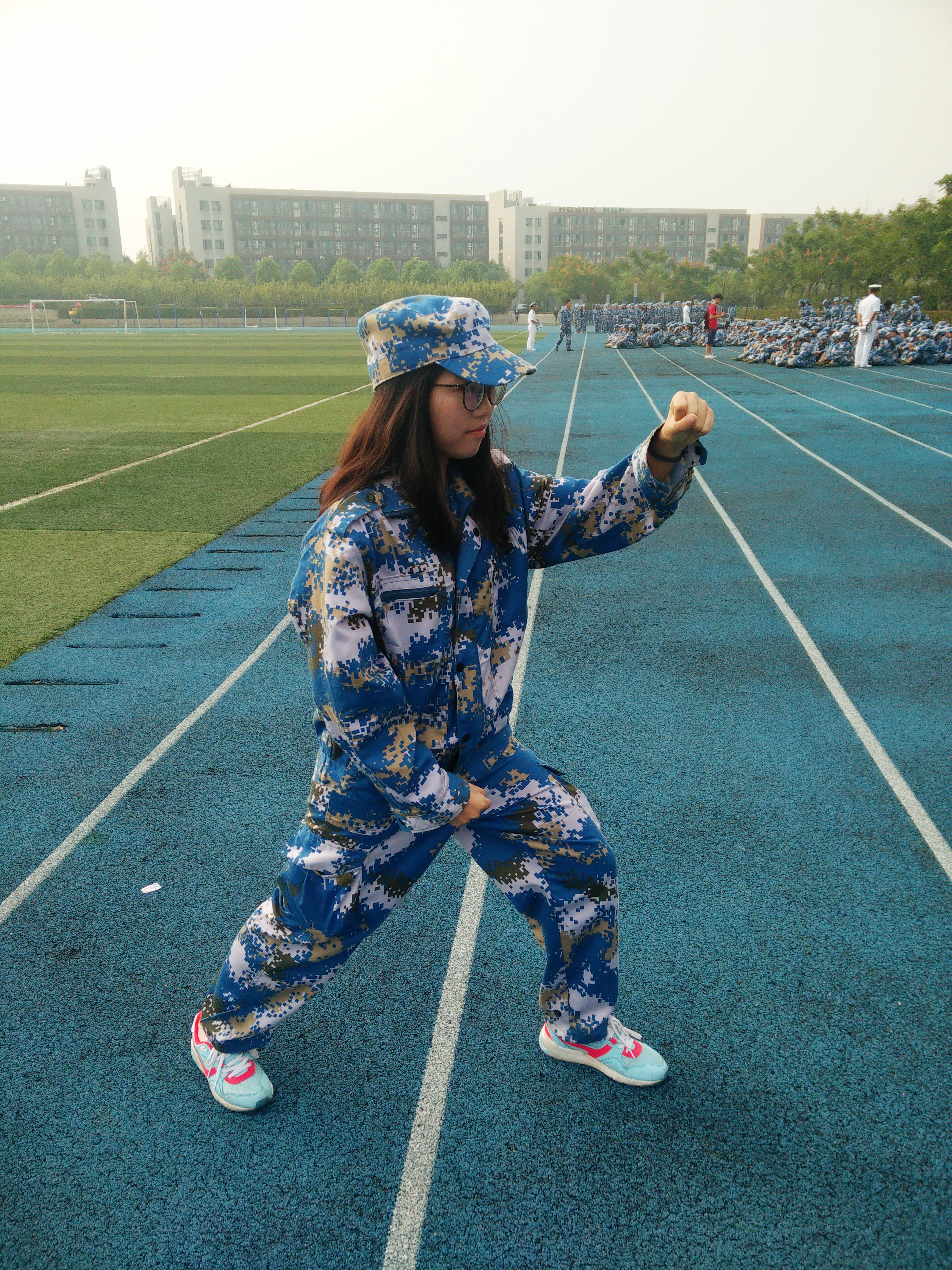 这一天如期而至,换上崭新的迷彩军装,怀揣激动的心情,军帽下是一张张陌生又稚气的面孔,藏不住的是对未来的期许和初见的喜悦。教官迈着铿锵有力的步伐给我们展示了军人的魄力,雪白的海军军装在阳光的照耀下格外耀眼。礼毕、教官严肃而又不失活泼地做了自我介绍——原来教官也是大学生,这一下似乎拉近了我们和教官的距离,一扫我们之前对军训的刻板印象。