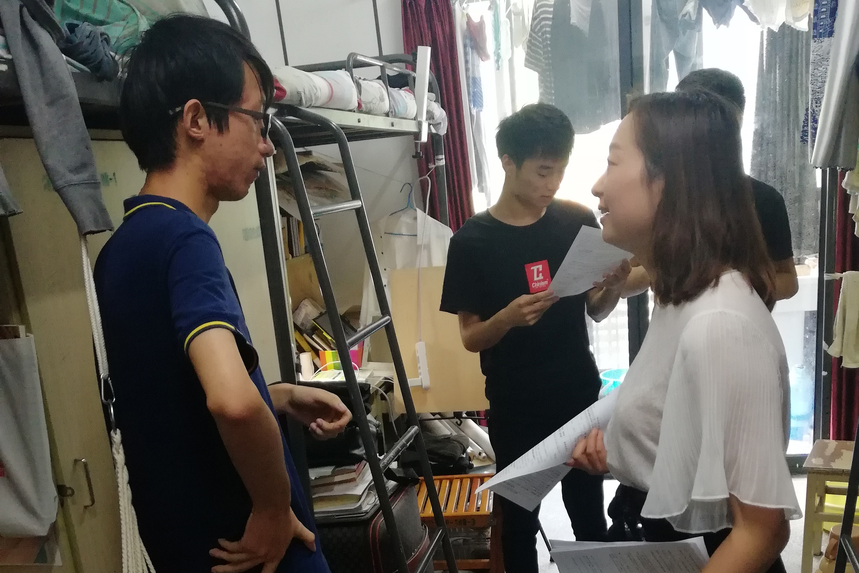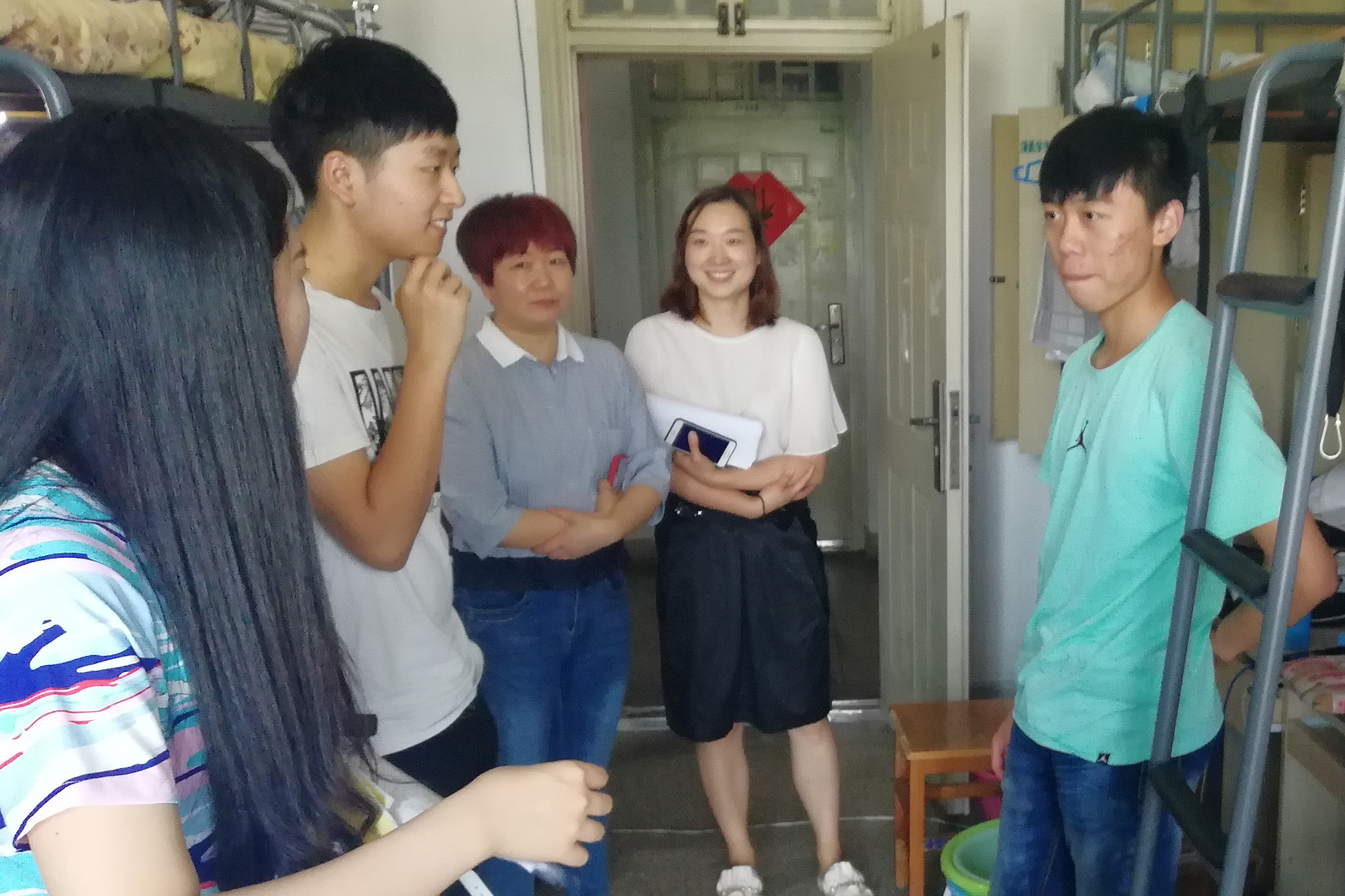 ---湖北美术学院设计系走寝宣传征兵政策(通讯员:易龙珊 摄影:高兴)深度了解学生学习情况,关心学生日常生活,2018年6月14日中午,湖北美术学院设计系党总支书记罗远红老师、辅导员黄婧,熊珂老师于藏龙岛校区走访设计系2017级男生寝室。同时,进行征兵入伍的宣传。