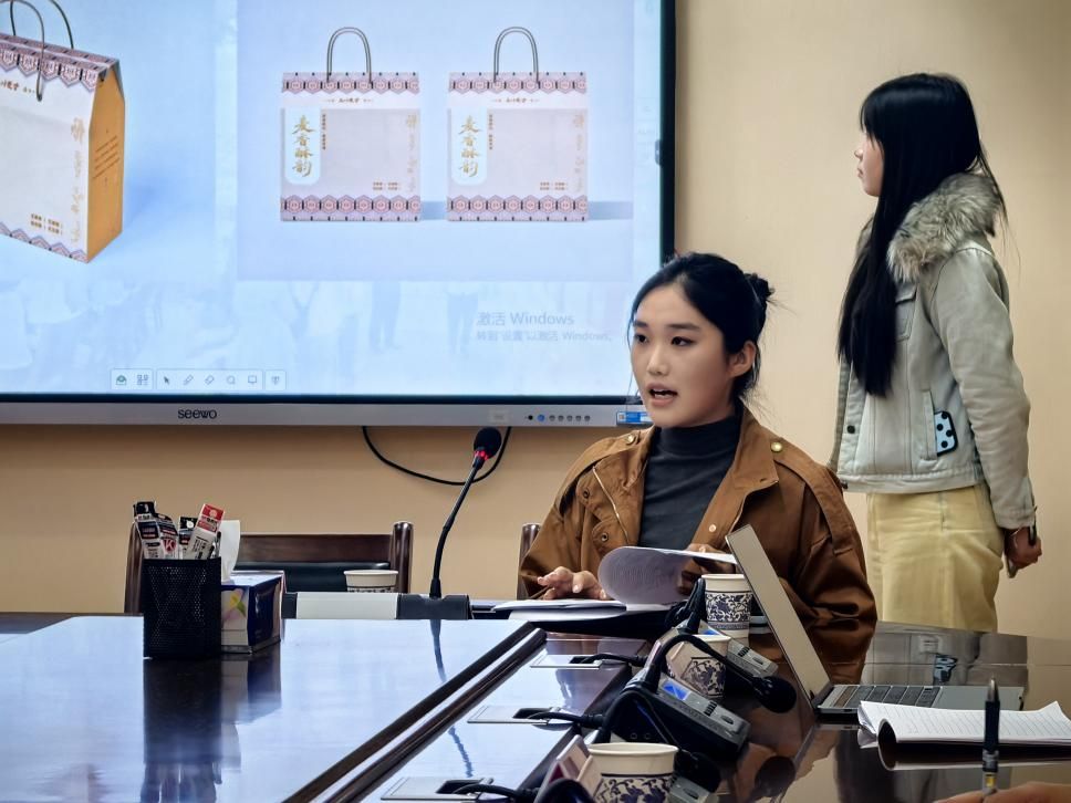 会议开始,张志强老师总结2025年五峰行活动成果。师生们深入乡村、企业进行实地考察,精准对接地方需求,为小微企业提供产品设计助力提升产品市场竞争力,同时为五峰宜红茶区域公共品牌设计产品包装。在核心的项目对接与成果展示环节,工作坊学生代表赵晨宇、徐雨珂系统汇报了本阶段的设计成果,并正式向对接企业交付了涵盖品牌视觉识别系统、产品包装设计等在内的系列化设计成果。