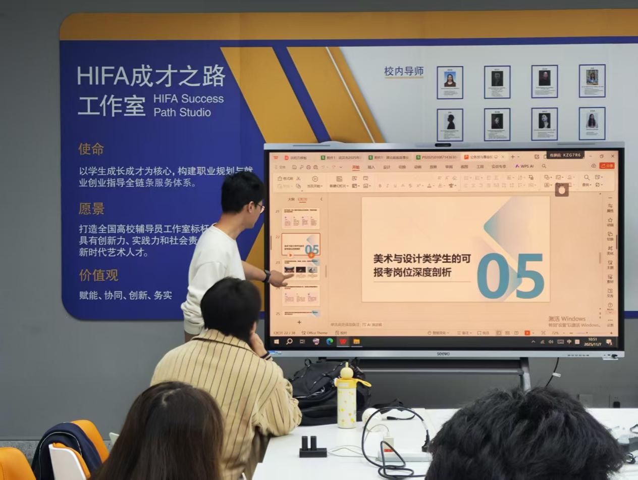 讲座中,柳骏老师系统梳理了当前公务员与事业单位招考的整体趋势,重点解读了2025年国考报名人数突破280万、平均报录比达70:1的严峻竞争态势,并指出艺术类岗位因专业壁垒形成的“小众赛道”正成为结构性机遇——应届艺术生在相关岗位中的招录占比高达60%。他结合湖北省事业编考试现状,详细介绍了综合管理类(A类)、社会科学专技类(B类)等五大招聘类别,特别强调博物馆、美术馆、文化馆、公安宣传岗及党政机关综合岗对美术与设计类毕业生的高度适配性。此外,柳老师还从备考策略、作品集准备、跨界技能提升(如PPT制作、视频剪辑)等方面,为同学们提供了精准、务实的行动建议。