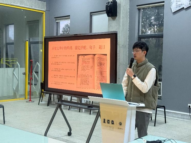 分享会上,研究生刘炀子逸分享了系统性的英语备考方法。他建议基础薄弱的同学从词汇和语法两方面着手突破,在词汇记忆上,通过系统化归类提升记忆效率;在语法学习上,强调以能翻译为核心目标,推荐通过66句长难句训练掌握长难句分析技巧。针对中期训练,他提出“自主翻译-对比答案-AI辅助”的三步学习法,并分享了先看问题、标段落、逐行精读的阅读解题技巧,帮助同学们提升学习效率。