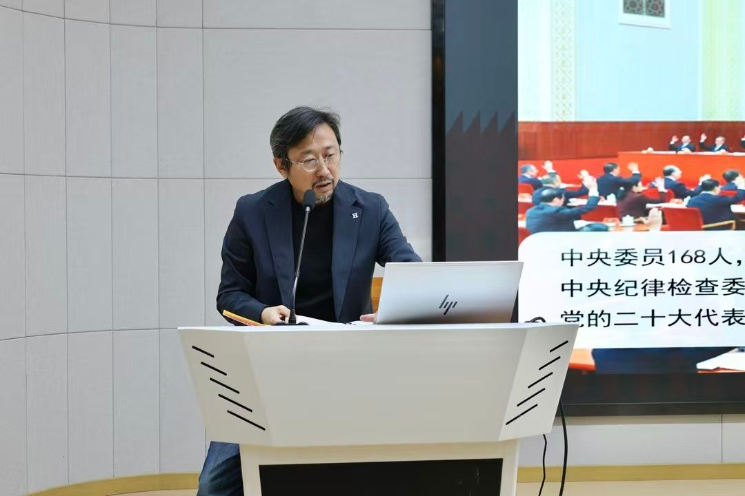 12月11日下午,副校长张炼在A12-115报告厅,以《学习贯彻党的二十届四中全会精神》为题,为师生讲授了一堂主题鲜明、内涵丰富、指导性强的主题党课,分管部门和联系单位的全体教职工、学生党员、学生干部约200余人参加学习。此次党课旨在引导广大师生准确把握全会精神的核心要义,切实把思想和行动统一到党中央决策部署上来,推动全会精神在艺术教育一线落地生根。