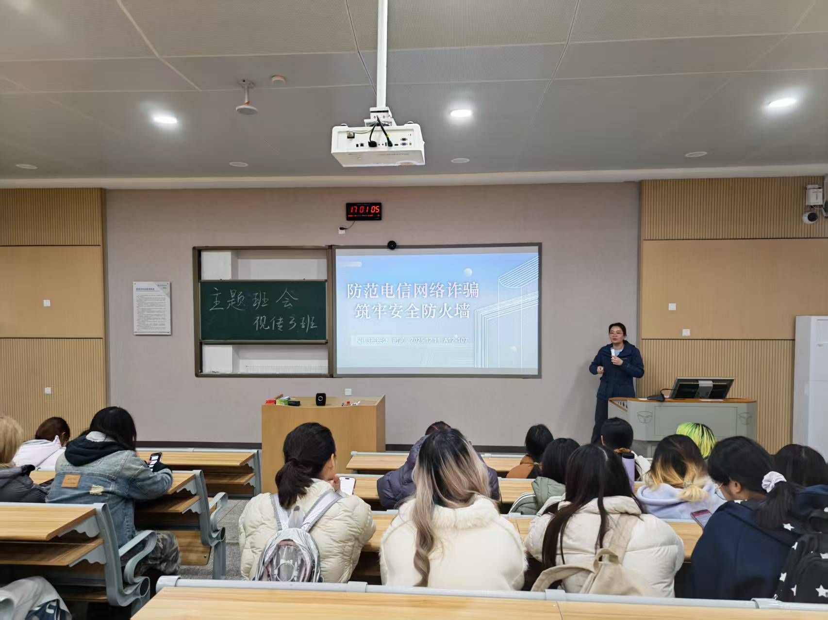 班会紧密围绕当前高发的电信网络诈骗类型,结合学生群体的特点,通过案例分析、情景模拟、条款解读等生动形式,深入剖析了刷单返利、冒充客服、虚假购物、网络交友等常见诈骗手法。各年级辅导员强调,务必戒除侥幸心理,牢记“不轻信、不透露、不转账”原则,守护好个人财产安全。