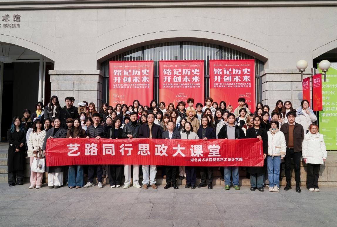 2025年12月9日,视觉艺术设计学院组织师生开展“艺路同行”思政大课堂实践观展活动,通过艺术观展深化思政教育,拓宽专业视野,激发创作灵感。活动由学院党委书记袁秀娟、副院长朱志平、凃志初带队,各年级辅导员及200余名本科生、研究生共同参与。师生们先后前往武汉美术馆(汉阳琴台馆)与昙华林校区美术馆,参观了“致美前行——湖北美术学院办学105周年”美术作品展、铭记历史·开创未来——纪念中国人民抗日战争暨世界反法西斯战争胜利80周年”主题海报设计展以及2025年湖北美术学院专业奖学金作品展,在艺术与历史的交融中开展了一场沉浸式学习之旅。