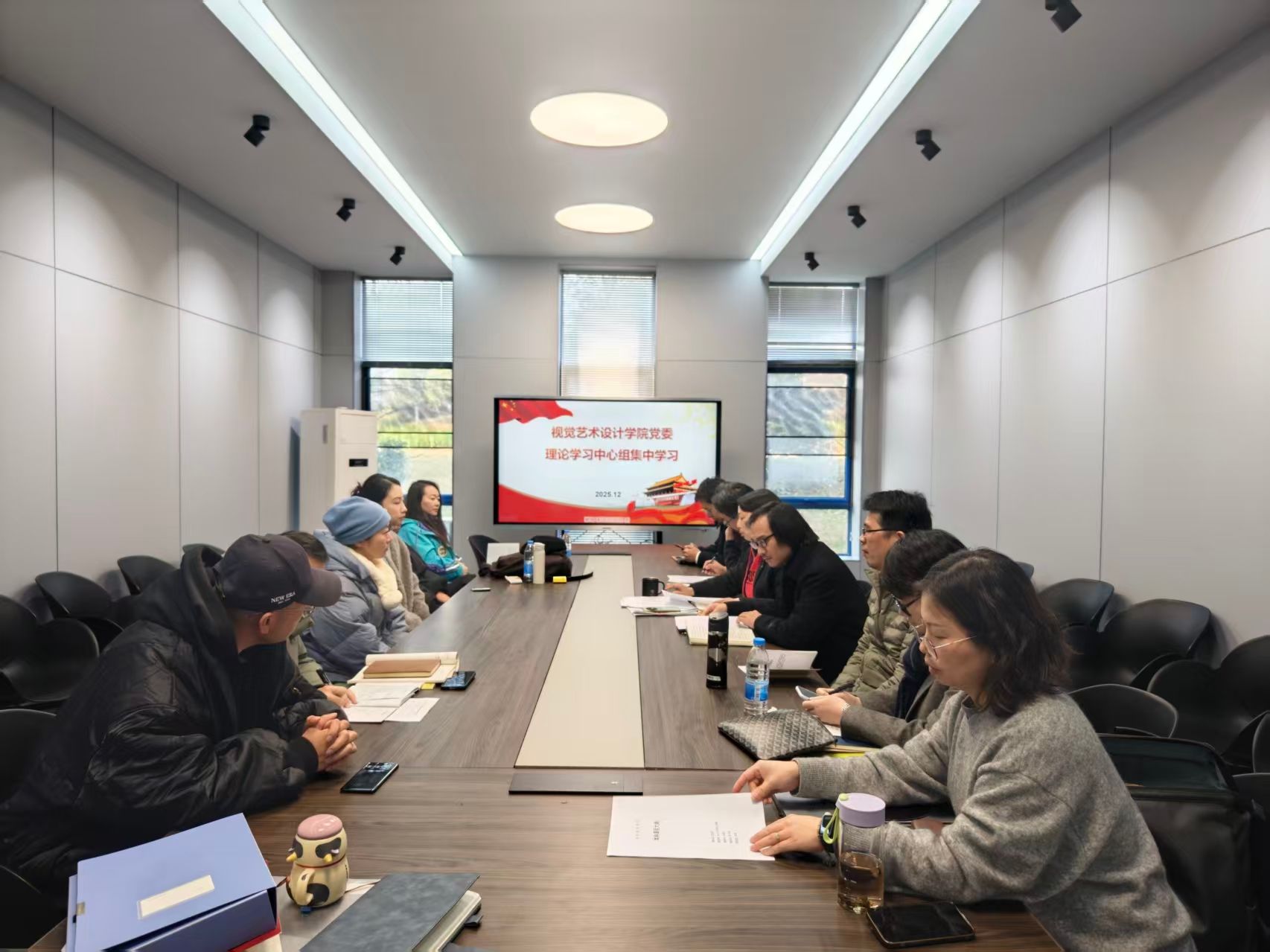 12月30日中午,视觉艺术设计学院党委理论学习中心组在A9教学楼108教室开展12月集中学习。本次学习会由学院党委书记袁秀娟主持,学院党委理论学习中心组全体成员参加学习。