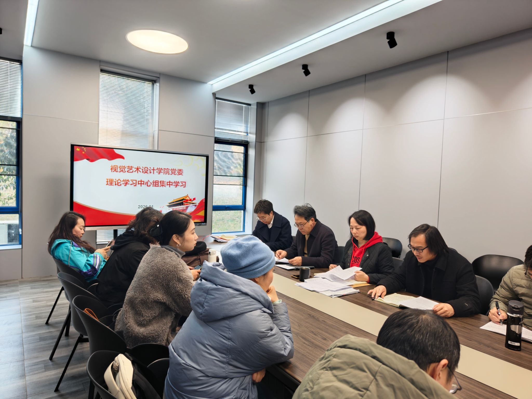 1月12日下午,视觉艺术设计学院党委理论学习中心组在A9教学楼108教室举行1月集中学习。本次学习会由学院党委书记袁秀娟主持,学院党委理论学习中心组全体成员参加学习。