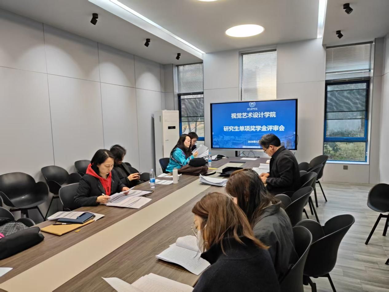 2026年1月12日下午,视觉艺术设计学院2025年度研究生单项奖学金评审会议在学院108会议室顺利举行。学院研究生单项奖学金评审委员会全体成员出席会议,秉持“公开、公平、公正、择优”原则,对申请学术创新、艺术展演、学科竞赛、发明创造等类别的单项奖学金成果进行集中审议。本次评定工作标志着学院2025年度研究生奖助体系评审全面收官。